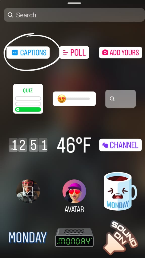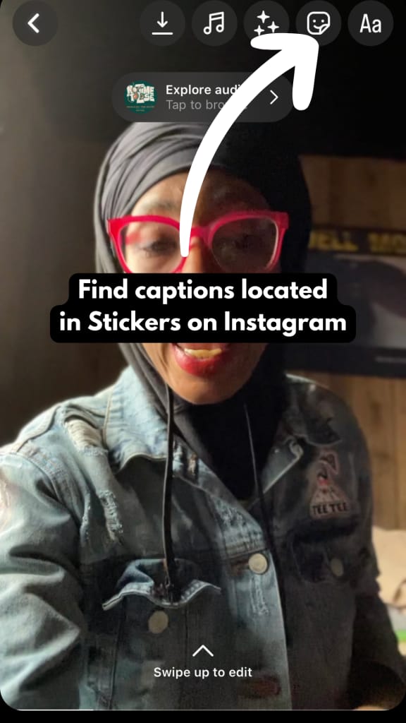 To find Captions, upload a video. This works with video in Stories and Reels. Tap the Sticker icon.
